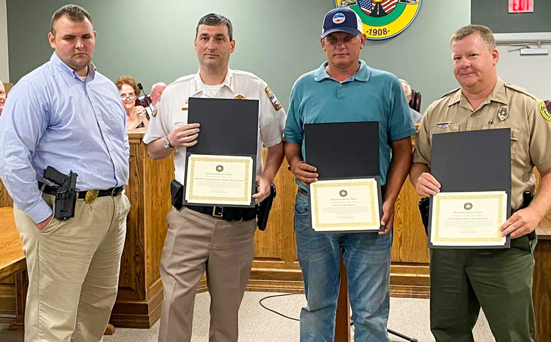 Several individuals were honored Monday afternoon by the Flomaton Police Department and Town Council for their part last week in locating a man with special needs that was missing for hours on a local creek.