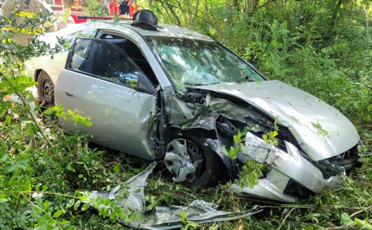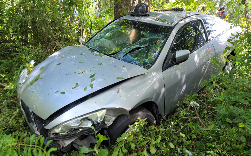 The passenger car crashed into a wooded area south of Archer Road about 10 a.m. Minor extrication was required to remove the driver from the vehicle.
