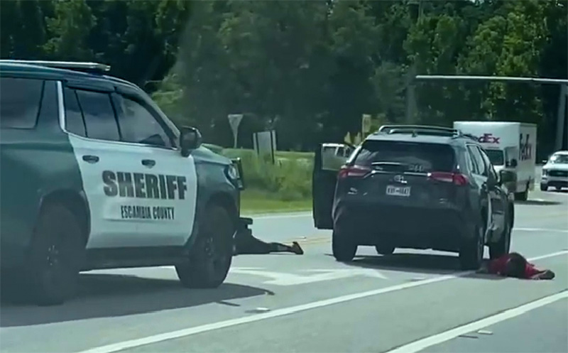 She said she fled with children in the vehicle and the perpetrator on the hood, according to the Escambia County (FL) Sheriff’s Office. She remained on the phone with 911 until deputies stopped the vehicle on Highway 97 at Crabtree Church Road in Molino, near the Tom Thumb.