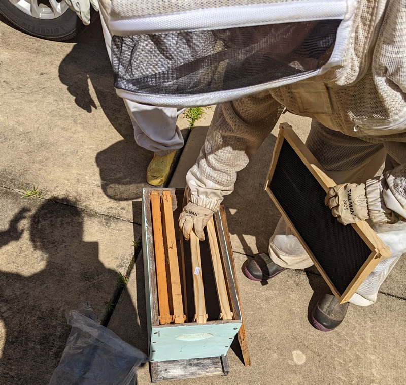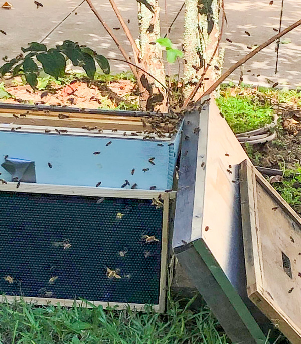 Strickland and Davis captured the queen and placed her in the beehive where she was joined by the swarm.