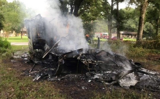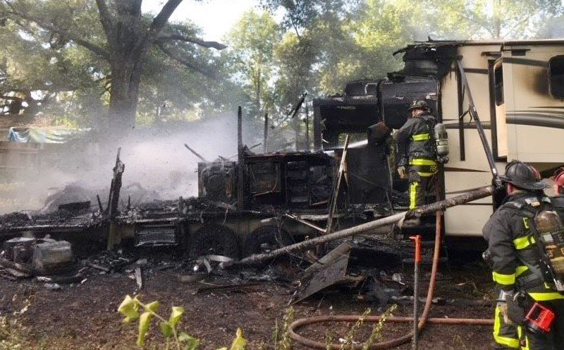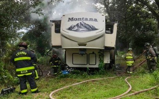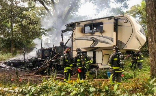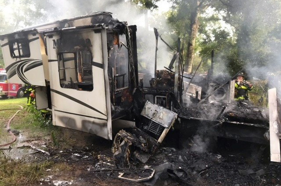 The 38-foot camper was fully engulfed when firefighters arrived, and the fire was under control by 4:55 p.m.