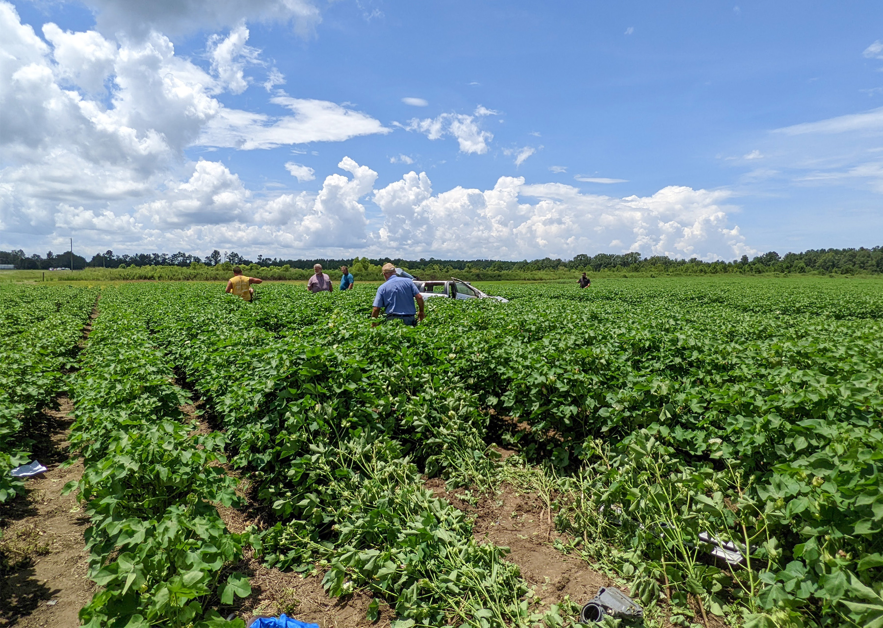 That was the scene last week along Highway 97 in Walnut Hill. First responders and volunteers searched the field, walking through the row after row of thick, waist-high cotton looking for the driver, a child…anyone that might have been ejected from the vehicle.