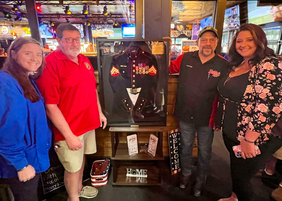 The Marine Corps League Pensacola presented the shadow box to Bubba’s 33 on Davis Highway.
