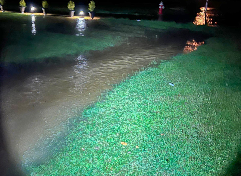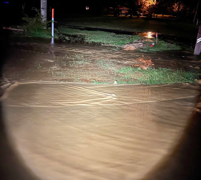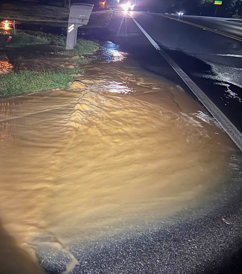 Reader submitted photos showed the water flooding a ditch, part of yards and the shoulder of Highway 297A near Pinebrook Circle shortly after 8:30 p.m. Crews were still working to complete repairs after daybreak Saturday.