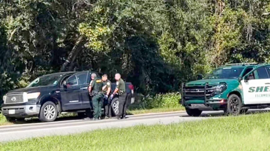 After a search in the Cantonment and Molino areas, an ECSO deputy located the suspect’s vehicle on Highway 29 southbound just south of Tree Street and International Paper in Cantonment shortly before 10 a.m.”