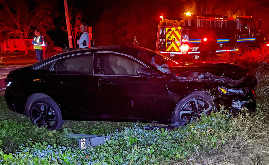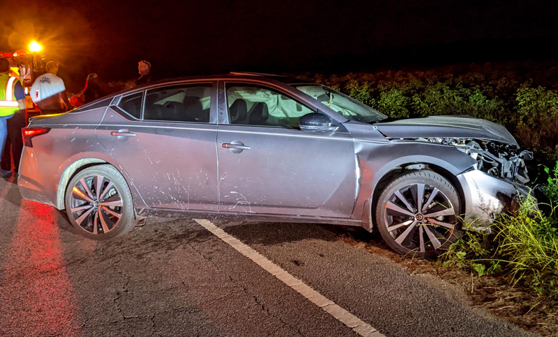 A Nissan Altima and Honda Accord collided on West Highway 4, just east of North Highway 99. The vehicles both traveled off the north shoulder of the highway following the crash.