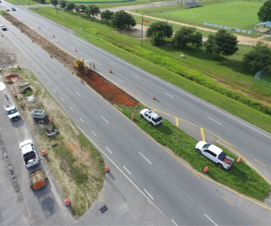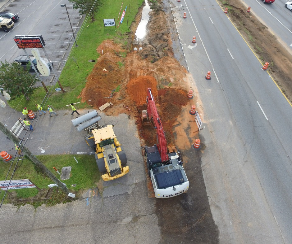 Workers are making progress on widening turn lanes and installing new storm drain pipes.