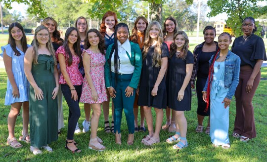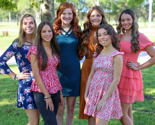 Pictured above: Homecoming court members (front, L-R) Payton Daw, Kara Santorelli, Caitlyn Gibson, TyDeasia McKenzie, Kathryn Beasley, Noel Pugh, Jalayah Bright, (back, L-R) Mary Catherine Hughes, Maddie Mae Driskell, Raven McCarthy, Anna Spence, McKenna Simmons, Emma Gilmore, Ar’mya Findley, and Saniyah Hixon. Pictured below are seniors (front, L-R) Kara Santorelli, Caitlyn Gibson, (back, L-R) Raven McCarthy, Anna Spence, McKenna Simmons and Emma Gilmore. NorthEscambia.com photos, click to enlarge.