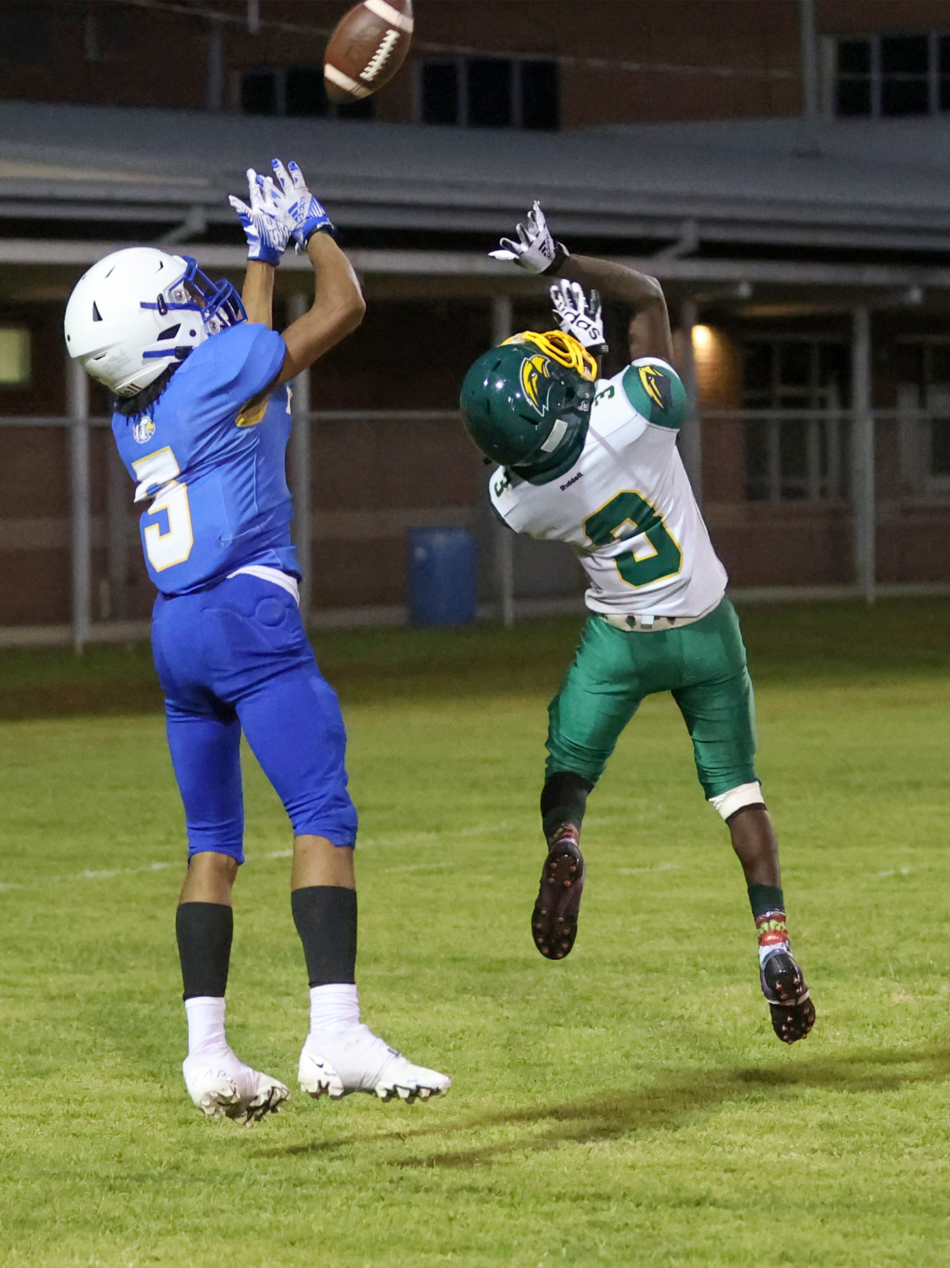 The game was tied 0-0 at the half. With 3:21 to go in the third quarter, Kintrell Brooks scored from about 65 yards out for the Eagles. With a good 2-point conversion, the Eagles took the lead.