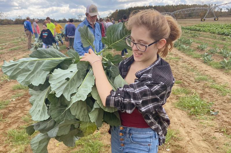 During Farm City Week, a couple of hundred or so student volunteers from Escambia and Santa Rosa counties work for a day in the fields near Jay to harvest collards, bag sweet potatoes, and more that will feed needy families at Thanksgiving.