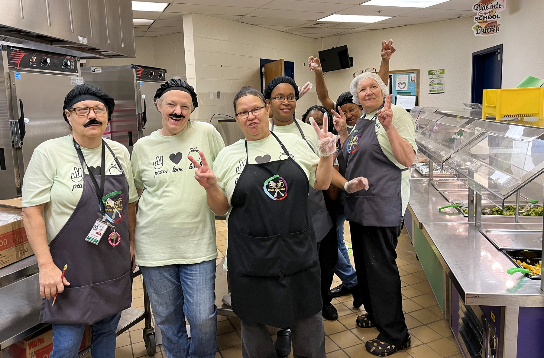 Students have enjoyed lunch specials that included “The Bomb Burgers”, “Flower Power Broccoli”, “Slammin’ Chicken”, “Tie Dye Smoothies” and “Peace Out Pineapple” during the “groovy” celebration.