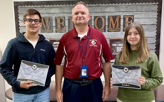 Northview High School has named their Students of the Month for September. They are freshman Jackson Simmons and sophomore Maggie Scott. They are pictured with Principal Michael Sherrill. Photo for NorthEscambia.com, click to enlarge.