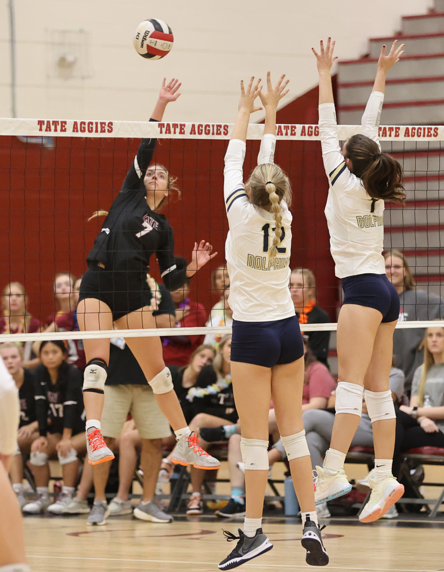 This is Robbins’ third year playing volleyball for the Tate Aggies.