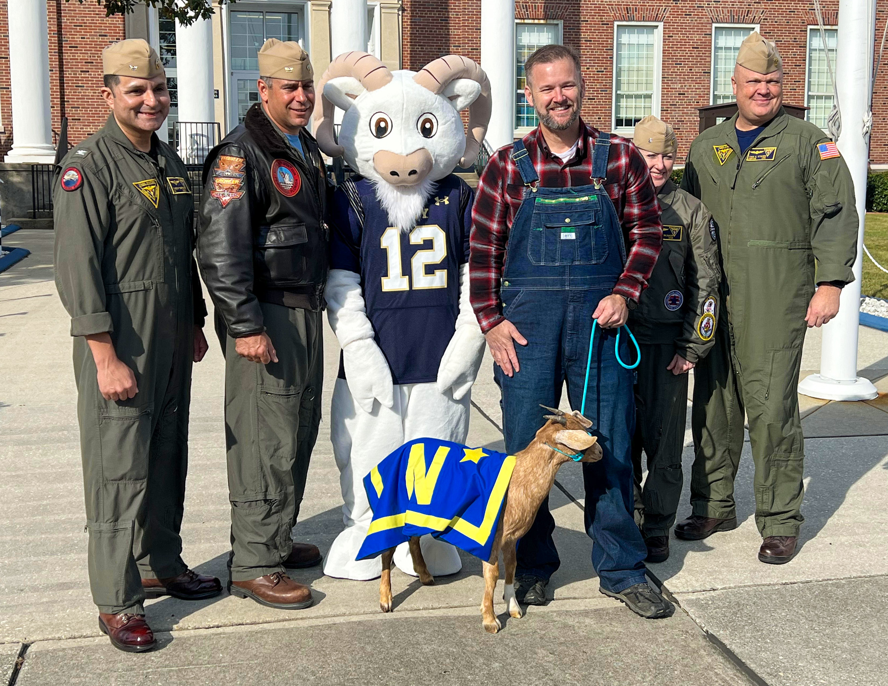 NAS Pensacola Commanding Officer Capt. Terrence Shashaty accompanied Bettie as they toured the base with Bill The Goat, the Navy’s football mascot, to encourage sailors to attend a watch party on December 10.