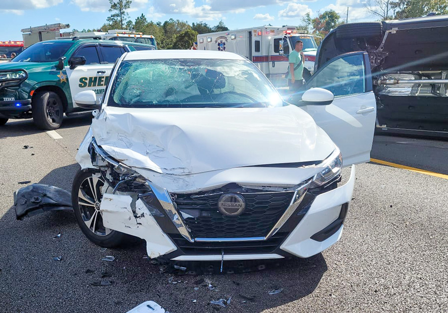 Firefighters were forced to remove the roof from the Kia in order to extricate the injured.