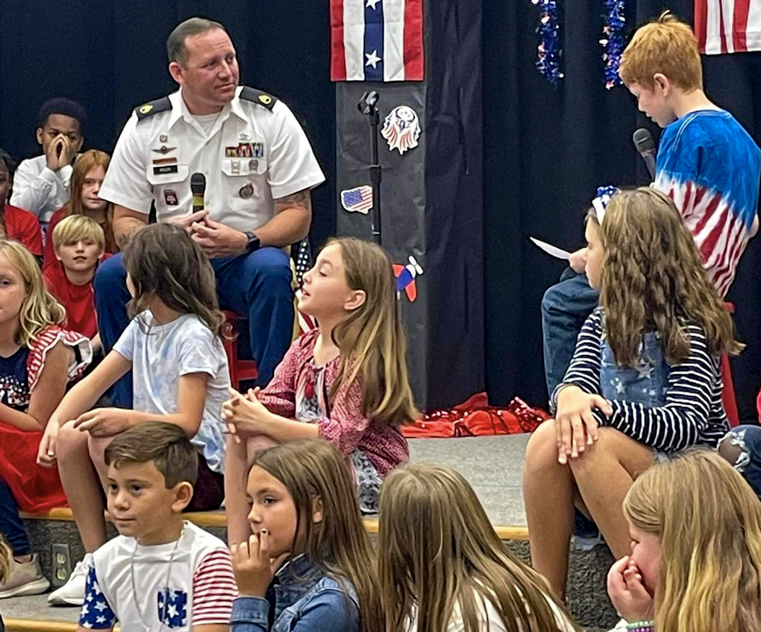 Bratt Elementary held a veterans parade and presented a special musical. During the program, Army Staff Sergeant Andrew Bolen was interviewed by his nephew Levi Bolen.