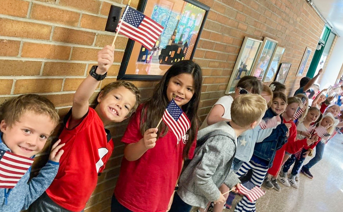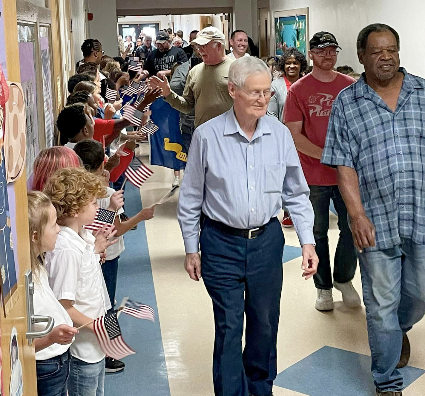 Pine Meadow Elementary School honored veterans with a parade, speakers, music, a Wall of Heroes, and breakfast.