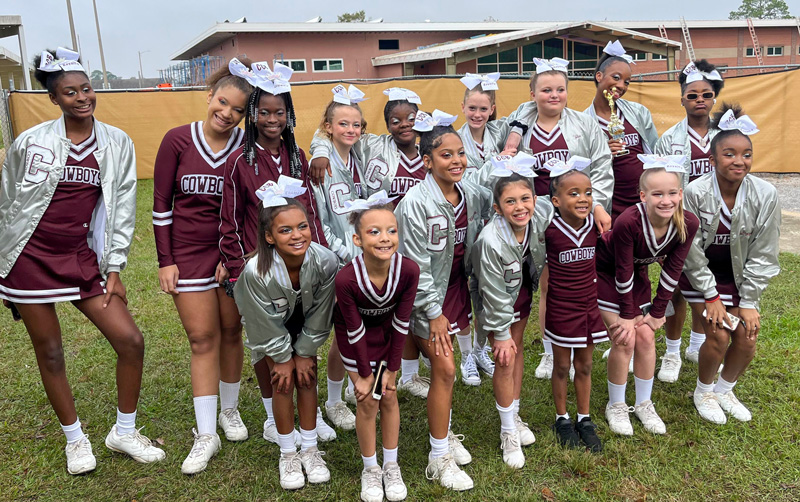 The Cantonment Cowboys junior cheerleaders won a first place and grand champion trophy in the recent Aggie Cheer Classic hosted by the Tate High Aggie cheerleaders. Photos for NorthEscambia.com, click to enlarge.