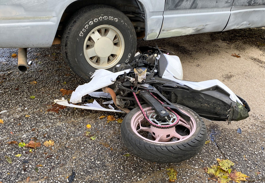 “The driver of the motorcycle attempted to avoid the collision by laying the motorcycle on its left side. As a result, the motorcycle slide under the SUV and collided with the undercarriage of the SUV in the intersection,” FHP said in a crash report.