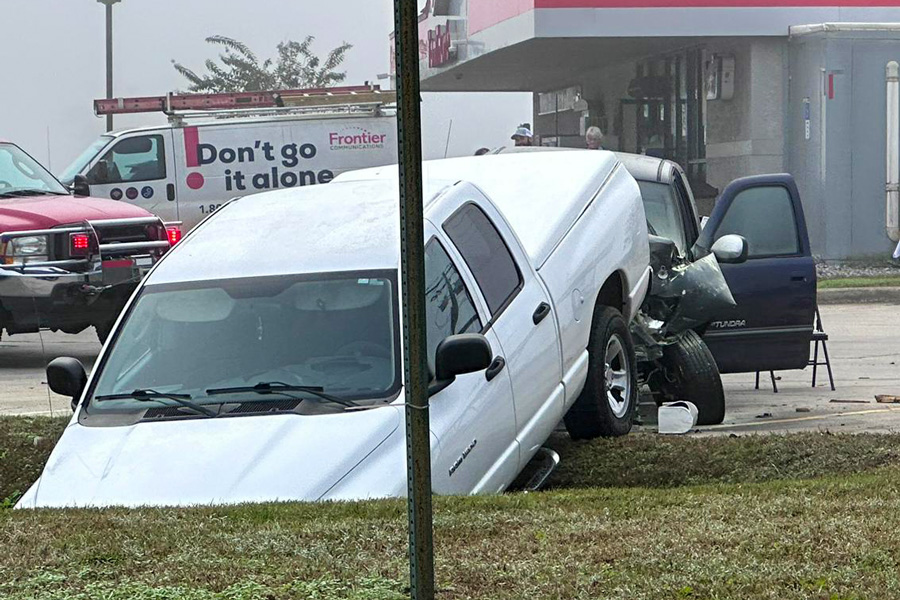 A male in his 70s struck a parked pickup truck in the parking lot of the Tom Thumb at Highway 29 and Highway 97 about 8:45 a.m. The collision pushed the parked pickup over a curb and into a ditch.