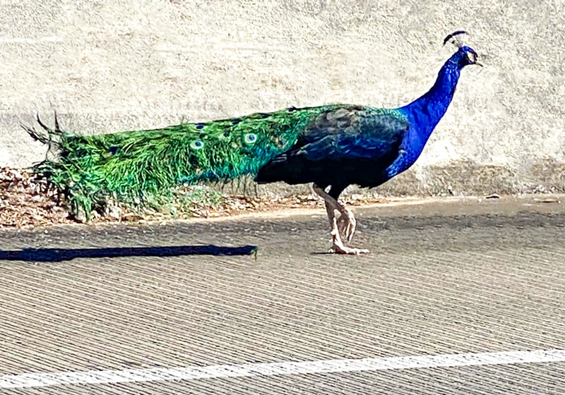 Numerous NorthEscambia.com readers sent us photos and contacted us after seeing the peacock strolling along in the emergency lane of the bridge.