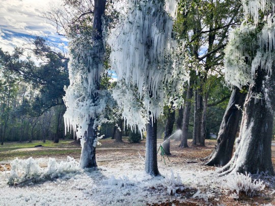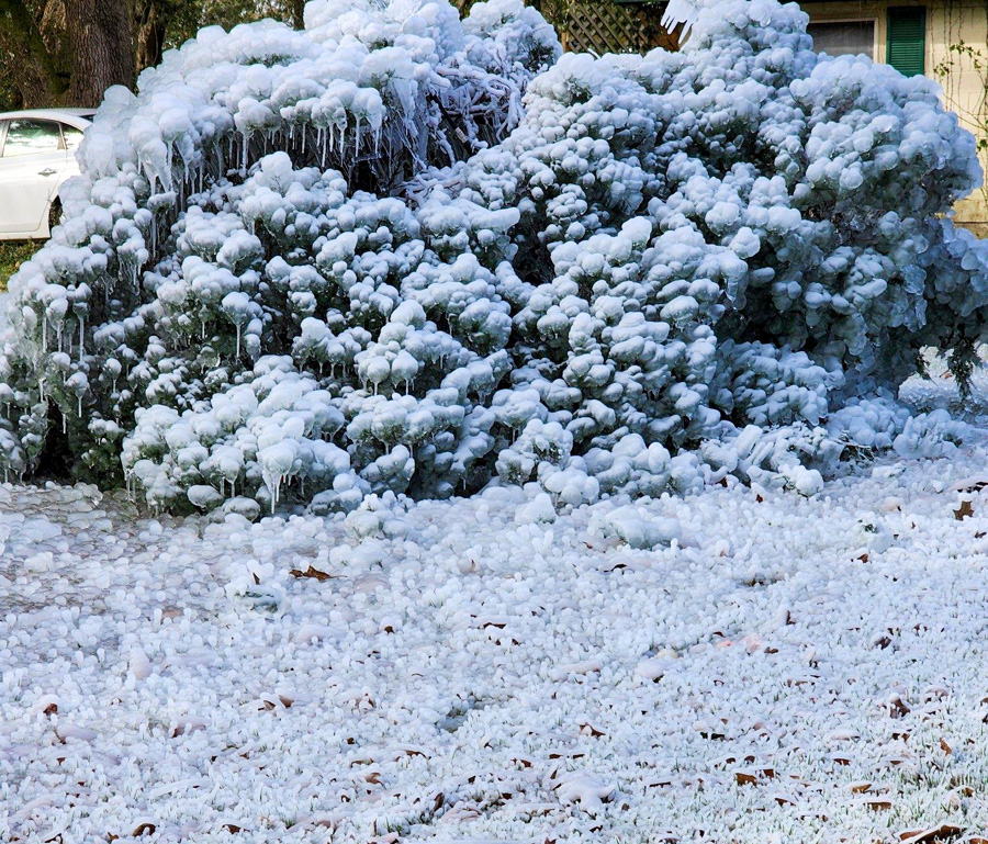 Pictured: A local resident took advantage of the cold temperatures to use a sprinkler to create this ice near West Roberts Road and Stallion Drive in Cantonment. Photos for NorthEscambia.com, click to enlarge.