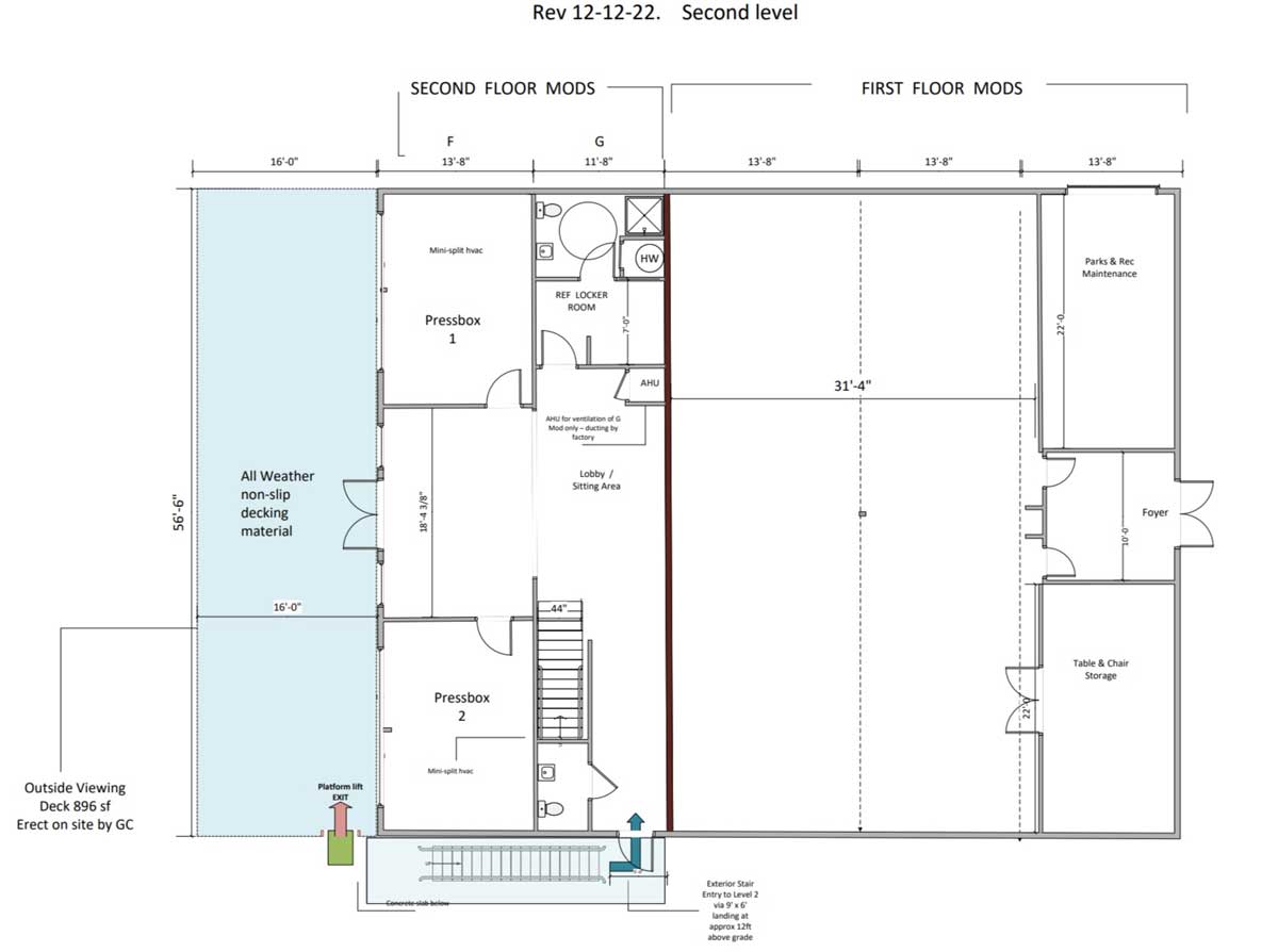 The open area within the new building will be suited for additional team lockers for those larger sporting events, and also compatible with the other activities.