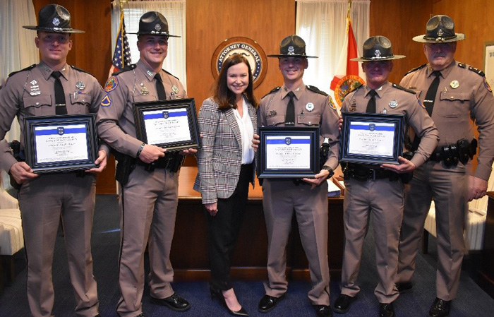 Attorney General Moody honored the following Troopers for rescuing the victim: Corporal Jacob Moore, Trooper Ethan Ellerbee, Trooper Matthew Davis and Trooper Ronald Khune.