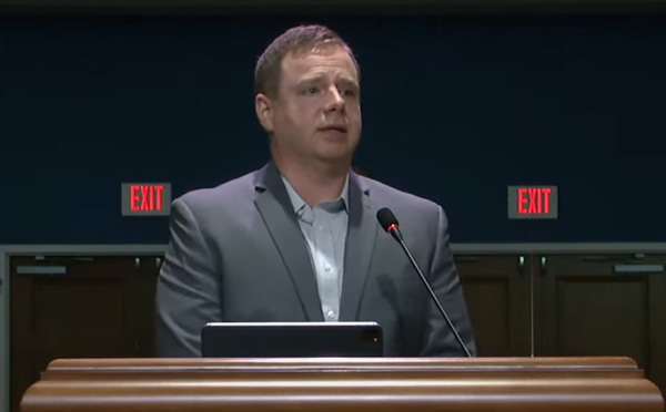 Pictured: Escambia River Electric Cooperative CEO Ryan Campbell addresses the Escambia County Commission on Thursday. Image for NorthEscambia.com, click to enlarge.