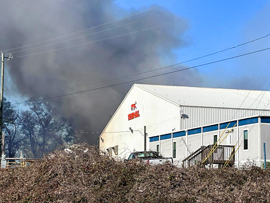 A warehouse building at Tiger-Sul Products on Highway 31 just west of the Atmore Country Club collapsed in the fire The building is was not the main plant.