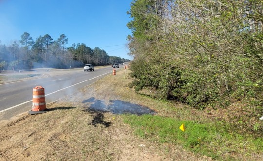On Highway 29 near Cedartree Lane, a fire that appeared to have started on the shoulder of the road spread into a nearby wooded area. The Florida Forest Services responded, along with Escambia County Fire Rescue.