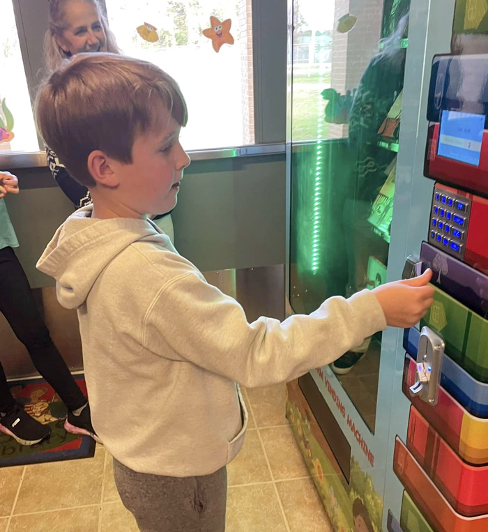 Students will read to earn tokens that can be used to “purchase” books. Monday, top accelerated reader scorers in each grade level were the first to use the new book vending machine.