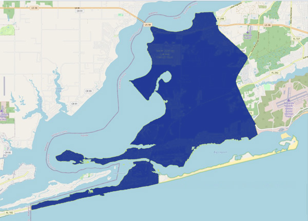 The proposed Perdido municipality has about 19,400 residents. As proposed, it would include Perdido Key and the inland area to the north.
