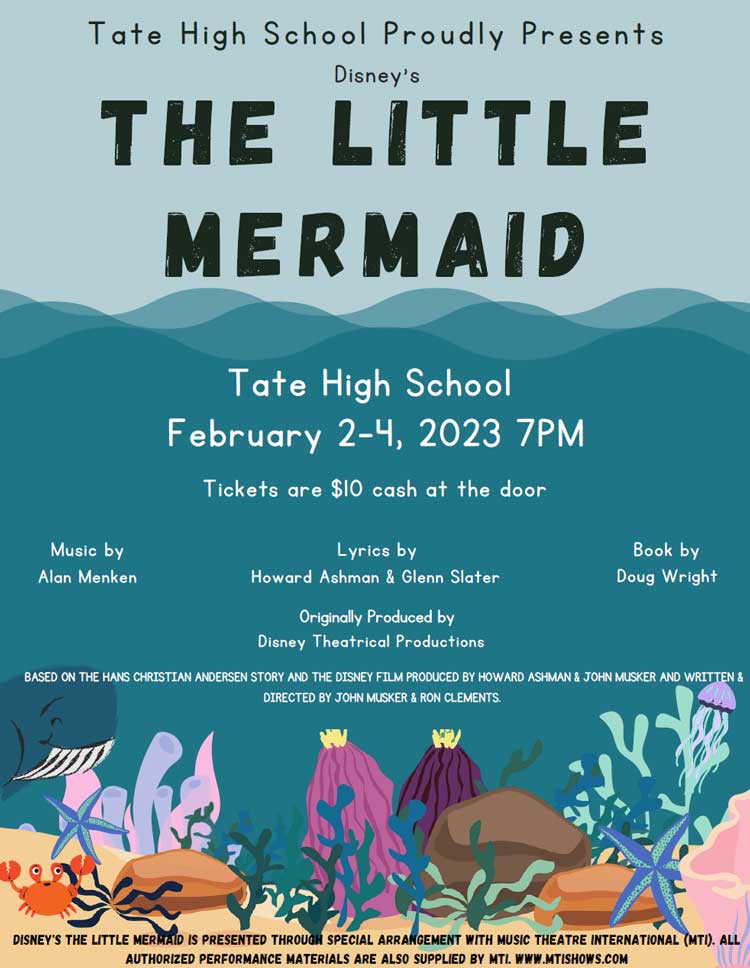 Mark your calendars…Tate High School’s Drama Department will present Disney’s The Little Mermaid February 2-4.