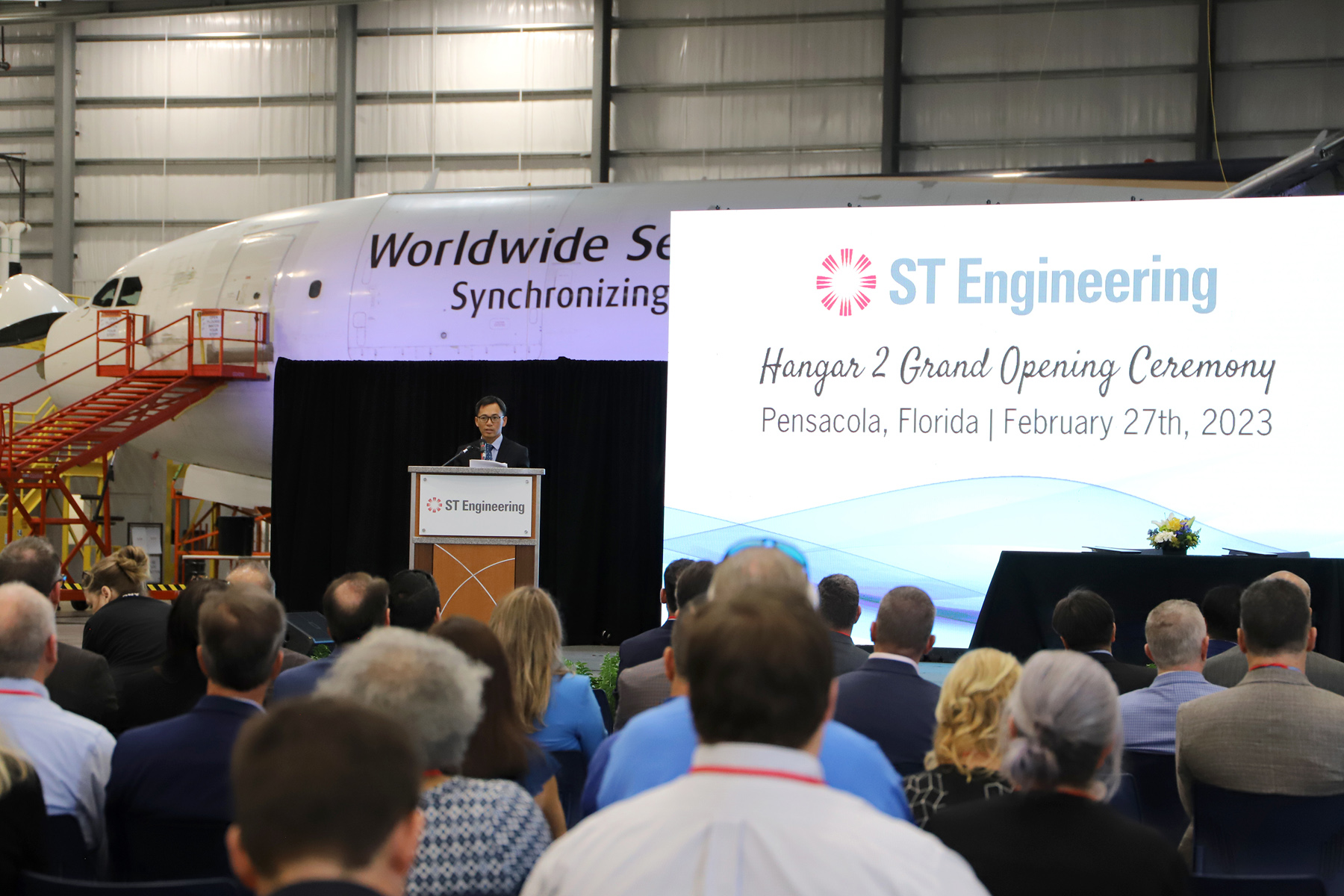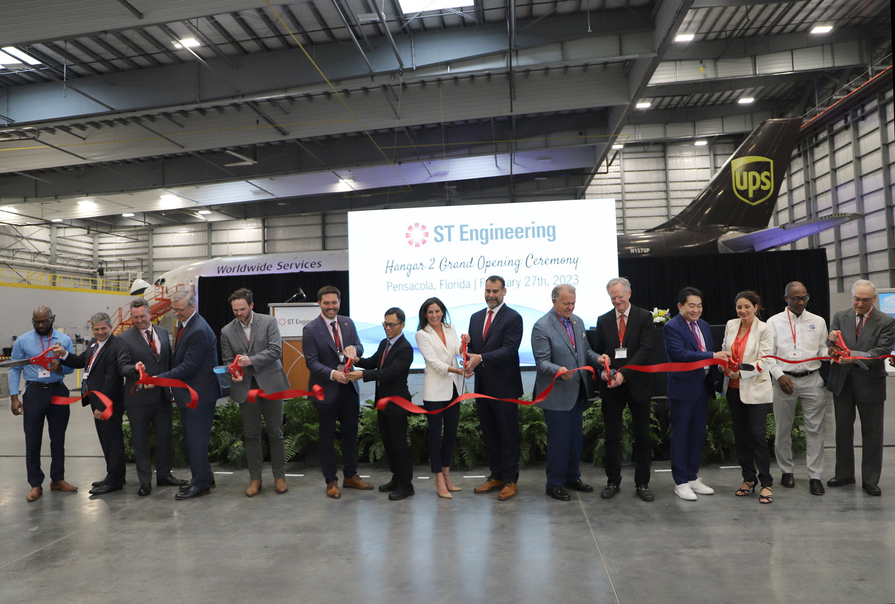 ST Engineering opened a new aircraft maintenance hangar at the Pensacola International Airport on Monday.