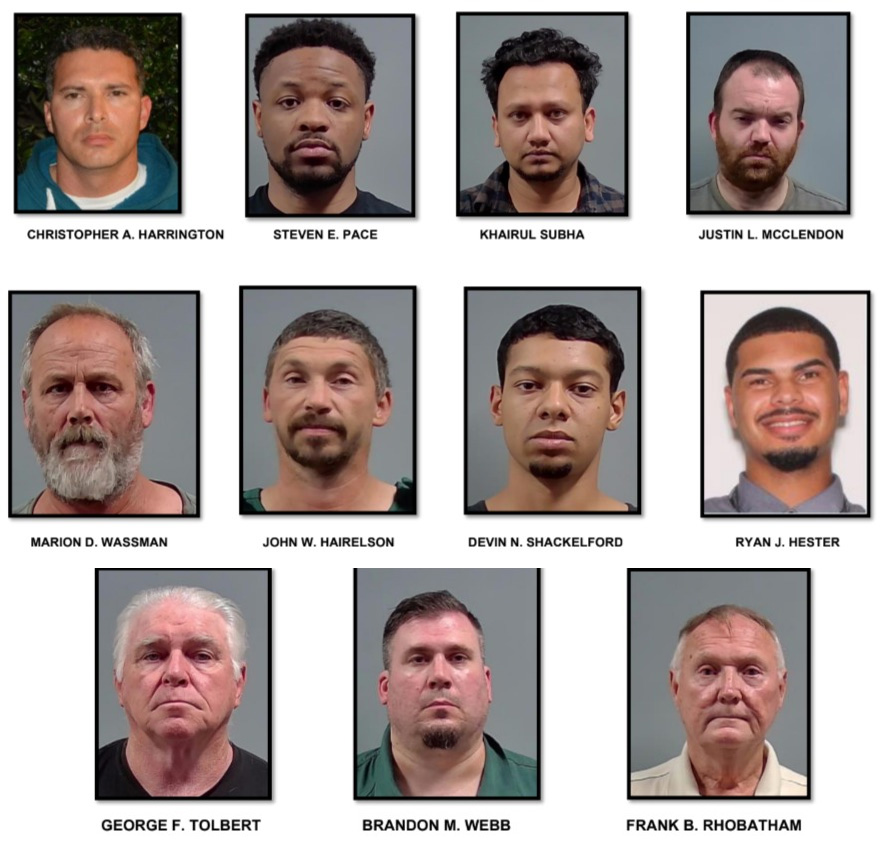A joint investigation involving the Pensacola Police ,the Escambia County Sheriff’s Office, the Federal Bureau of Investigation, the Florida Department of Law Enforcement, and the Department of Homeland Security has resulted in the arrests of 11 men.