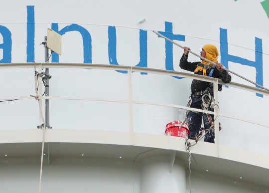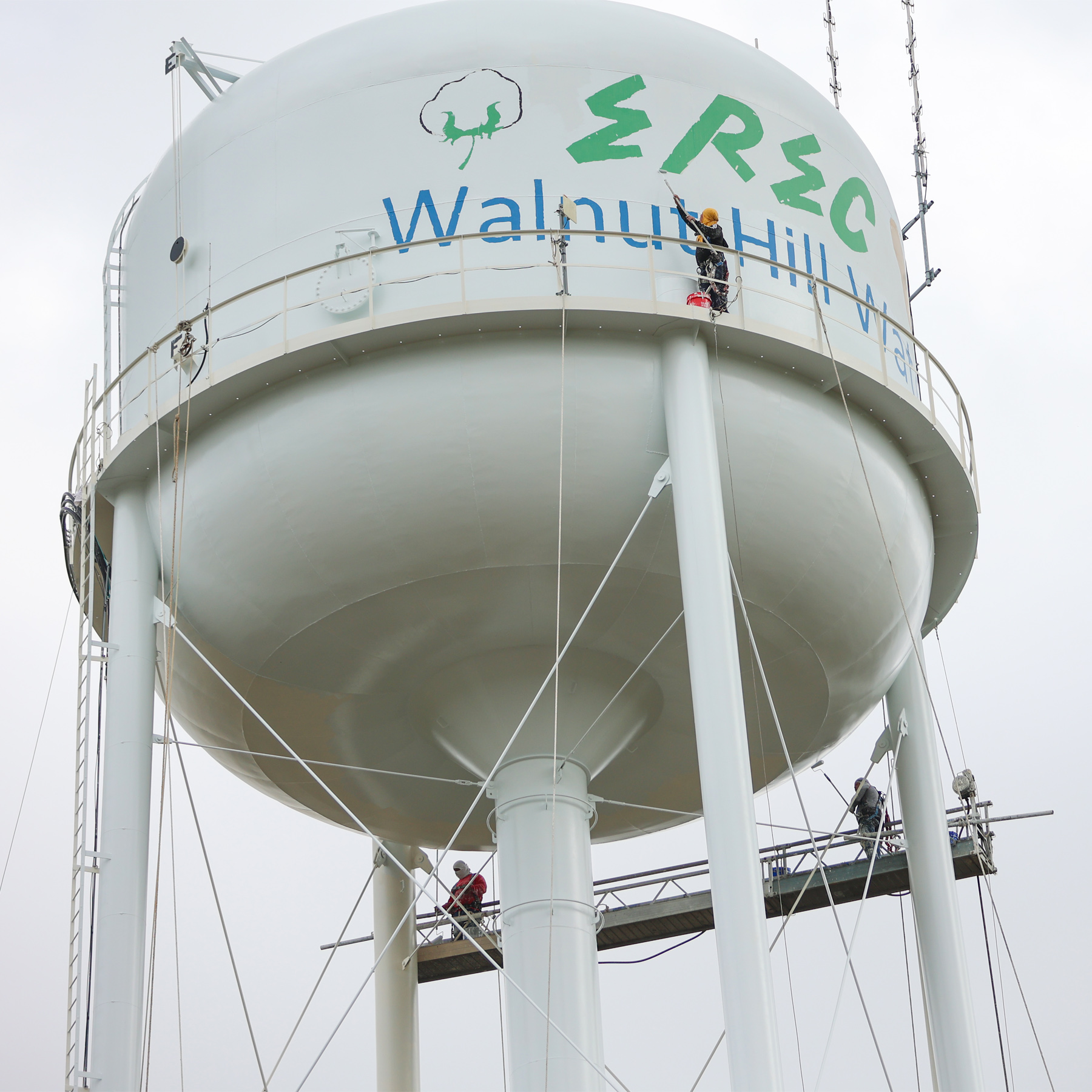 Crews are working to paint one of the two water towers in Walnut Hill.