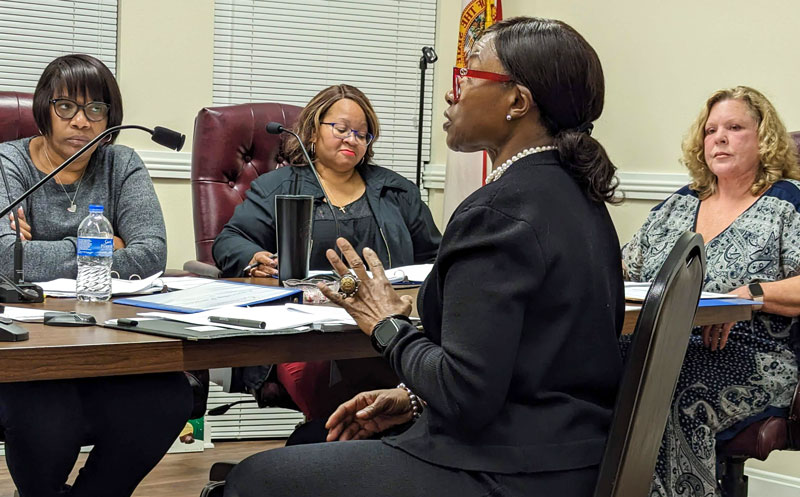 Pictured top and inset: Dr. Jessica A. Griffen, CEO of The Urban Development Center, addresses the Century Town Council at two different meetings. NorthEscambia.com photos, click to enlarge.
