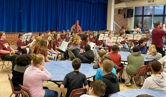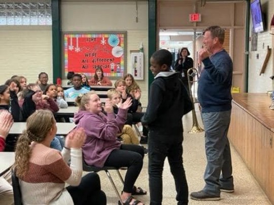 The band performed at local elementary schools recently, including Jim Allen and Pine Meadow (both pictured).