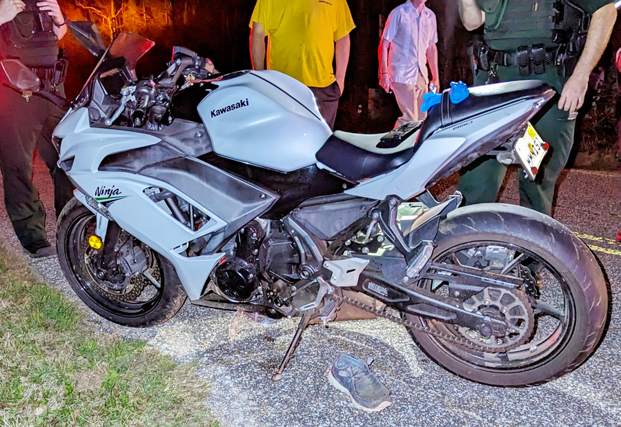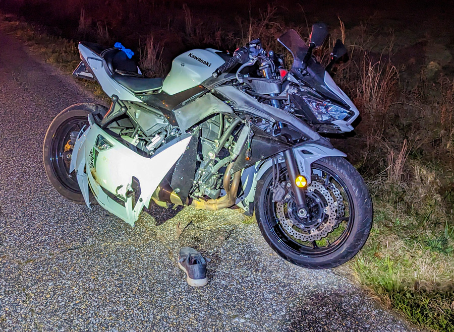 The driver of Kawasaki Ninja was northbound on Still Road just north of Rigby Road when he lost control and crashed, coming to rest on the roadway.