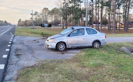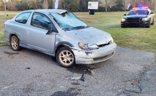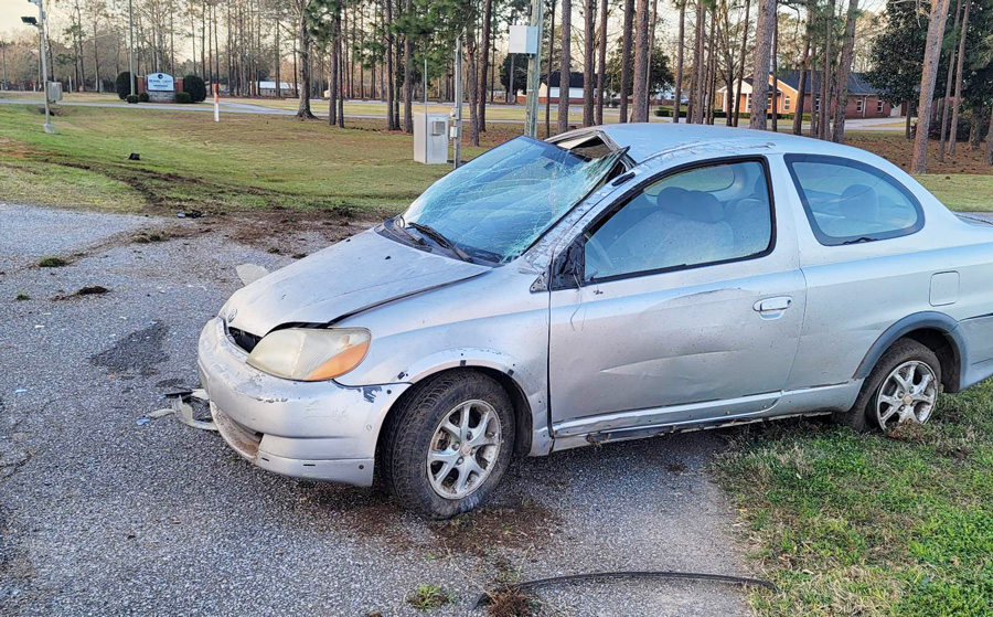 The driver of a small Toyota car lost control on Highway 29 at the Victory Assembly of God Church, just south of Barrineau Park Road. The vehicle left the roadway and overturned, coming to rest upright.