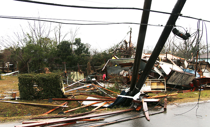 The tornado continued to track across the state line into Alabama with EF-2 damage on Old Fannie Road east of Flomaton. The tornado continued toward Pollard, AL, where it weakened and lifted at 3:55 p.m.