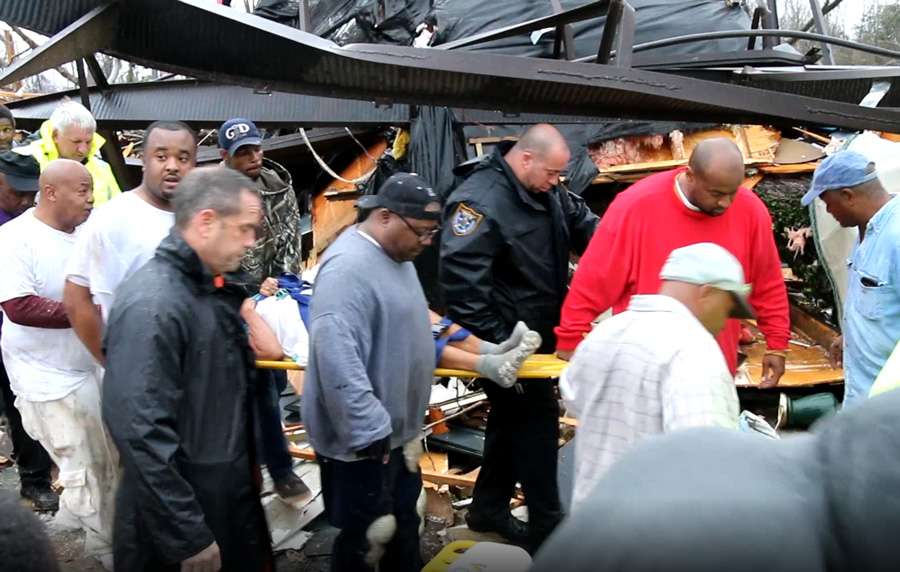 The photos on this page and in the first gallery below were taken just by NorthEscambia.com just minutes after the tornado touchdown in Century. In the top photo seen around the world, neighbors and first responders came together to rescue a woman that was trapped in her overturned mobile home.