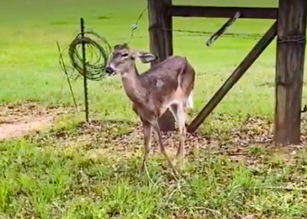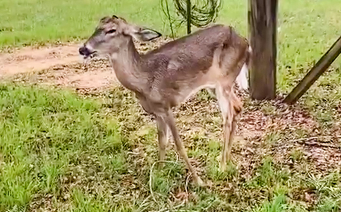The deer was discovered last week by a local resident along North Pineville Road near Tullis Road, in extreme northwestern Escambia County, Florida. The deer showed signs of extreme weight loss and was approachable.