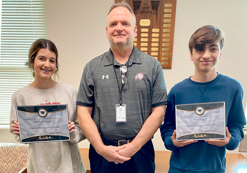 Northview High School recently named their Students of the Month for February. They are Marabelle Hamilton and Heath Parker. They are pictured with Principal Michael Sherrill. Photo for NorthEscambia.com, click to enlarge.