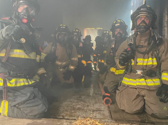 The group completed introductory live burn training, exposed to flames, heat and smoke for the first time in their fire academy training. The exercise was completed in a controlled environment with fire from hay and pallets.