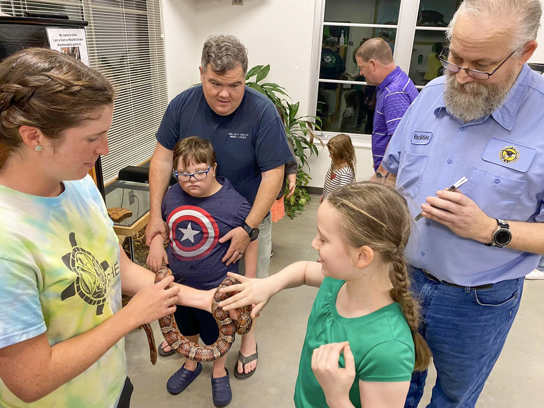 Visitors were able to meet owls with the Wildlife Sanctuary of Northwest Florida, peer through telescopes into the beautiful night sky with the Escambia Amateur Astronomy Association, observe aquatic animals in their different aquatic habitats, learn about exotic creatures, visit with the resident reptiles in the Reptile Room, stroll through the butterfly house, and more.