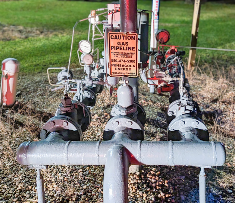 A passerby reported the smell of gas on North Highway 99 near Amerson Drive about 8:15 p.m. Wednesday. The Walnut Hill Station of Escambia Fire Rescue responded and found an extremely strong smell of gas coming from the high pressure Pensacola Energy pipeline. The valve station is located about 150 feet off the roadway in the yard of a residence.