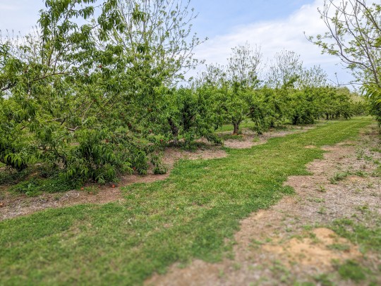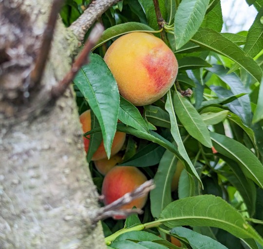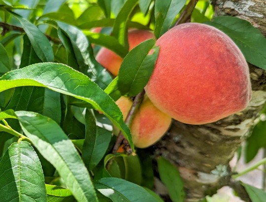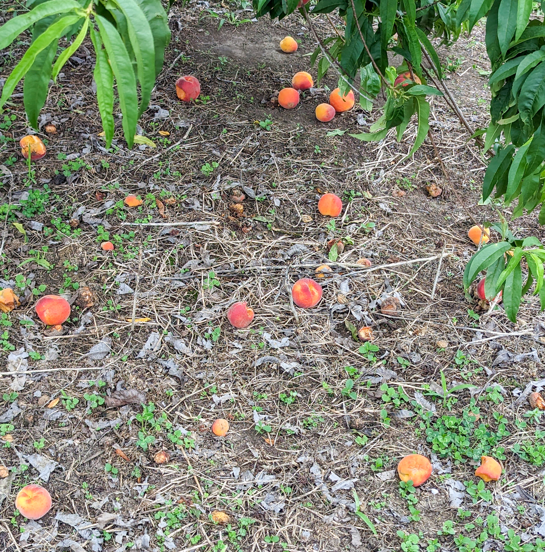 When we visited last Saturday, many of the peaches showed obvious damage from the freeze, and many smaller ones had fallen to the ground. While it was a bit of a scavenger hunt, decent size sweet peaches could be found across the orchard.