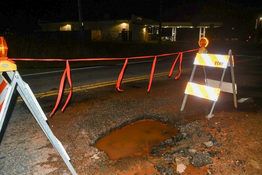 The Escambia County Sheriff’s Office blocked the roadway, and the Escambia County Road Department placed traffic barriers around the hole.